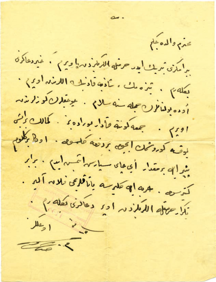 Sadık Beyin annesine mektubu
