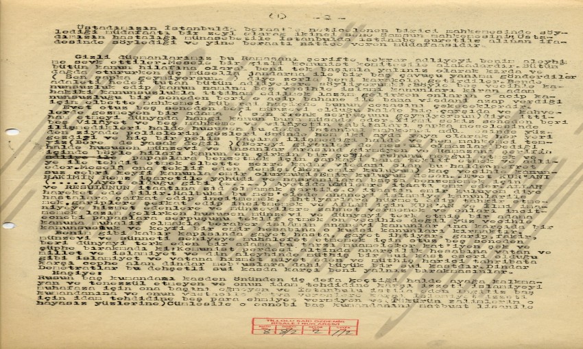 Aziz, sıddık kardeşlerim, Ben hadsiz şükrederim ki, …. Pek azdır. Sizi ruh-u canımla tebrik ederim. Saniyen, Barla’lı kardeşimiz Bahri bana dedi. Matbu’ onuncu sözden bir kısım nüshalar Barla’da kalmış. Varsa siz alınız bana gönderiniz. Salisen: Ben Denizli ile pek çok alakadarım. Ve oraya müştakım. Fakat şimdi ihtiyar elimde değil. Siz fedakar Ahmetlerin mektuplarına cevap veriniz. S.A. Çok müştak çok aziz, çok mübarek, çok sevgili üstadımız efendimiz hazretleri, Evvela: Binler selam ve arz-ı hürmet eder, mübarek el ve ayaklarınızdan öper, sıhhat ve afiyetinize dua eder, duanızı yalvarırız. Saniyen, Ankara’da Risale-i Nur’un fütuhatı bin maşallah Cenab-ı Hakka hadsiz şükür olsun. Gerek üniversite gençliği ve gerekse mühim mevkilerdeki kimseler arasında fevkalade bir tarzda devam etmektedir. Bir kısım üniversiteliler din mevzuunda her hafta konferanslar verecekler. Bunlardan bir kısmı tamamen Risale-i Nur’dan okunacak. Diğerlerinde de Risale-i Nur’dan verecekleri konferans mevzuunu arayacaklar ve anlatacaklardır. Aralarında birbirlerine kitap tavsiye edeceklerken en başta Nur Risalelerini tutuyorlar. Bu Cuma ertesi akşamı birinci konferans iman mevzuunda bir nurcu kardeşimiz tarafından verildi. Yedinci ricadan Asa-yı Musa’dan, Yirmi üçücü sözden imana dair olan bahislerden aynen okunmuştur. Ve şöyle demiştir. “Arkadaşlar! Vatan, millet ve gençliğimizin her sahadaki terakki ve ta’lisi tahkiki iman dersini almakla dinen kalkınmakla mümkündür. Evet dinen ve manen uyanacağız. Fakat bir çok dini malumatlardan en başta imana dair olan bilgileri almamız lazımdır. Zira en yüksek hakikat imandır. İmansız insan, insan olamaz. Sonra mason ve koministler bütün kuvvetleriyle imana taarruz etmişler. Öyle ise bizim de bütün kuvvetimizle imanımızı kurtarmaya çalışmamız lazımdır. Ve en evvel ve en başta imanımızı kurtaracak Risale-i Nuru okumamız kat’ilerin kat’isi olarak kat’i lazım ve elzemdir. Bu vatanda yirmi yedi yıldan beri olan tarihte görülmemiş bir eşiddi zulüm ve istibdat-ı mutlak içinde imanını muhafaza eden ve dalalet ve bidatlere uymayan Risale-i Nurdan tahkiki iman dersini alanlar olmuştur. Ve tarihte emsali geçmemiş bu taarruza ancak ve ancak Risale-i Nurdan tahkiki iman dersini alanlar dayanabilmiş. Ve onlarla tarihi bir mücahede yapmışlardır. Görülüyor ki: Risale-i Nur dan ferd ferd, şahıs şahıs tahkiki iman dersini almamız ekmek ve suya ihtiyacımızdan ziyade olan zaruri bir ihtiyacımızdır. Çok aziz ve sevgili üstadımız efendimiz hazretleri, bu toplulukta üniversitenin her fakültesinden talebeler ve profesör ve mebusta vardı. Risale-i Nur okunurken bunlarda husule gelen ehval-i ruhiyeyi anlatmaya muktedir değiliz. Risale-i Nur’dan Feyiz alan bu kimselerdeniz. Lisan-ı hal ve kal ile çok fazla minnettar olmuşlardır. Mübarek Üstadımıza her an her saniye minnet ve şükranlarımızı arz ediyoruz. Salisen : Velakette bulunan ve Nurlara çok müştak olup, hayret ve takdir tahsinlerle okuyan bedri bey çok selam ve arzı hürmet ederek dualarınızı istirham ediyorlar. Rabian : Zübeyir arz ediyor ki; Çok aziz Üstad’ım Efendim hazretleri, Risale-i Nur bu çok kusurlu talebenizi Adanaya bağlı Islahiye kazasına tayin etti. Bu tayinde ihtiyarımız hiç karışmadı. İhtiyarımız olmadan Kahraman Ceylan kardeşimizin yakınına gönderilmenden o kadar memnun ve mutahassız oldum ki Cenab-ı Hakka şükürler ediyorum. Siz sevgili Üstadımdan uzakta kalacağıma bu cihetle fazla üzüldüm. Dua buyurun. Risale-i Nur’u ihlas-ı tamme ile çalışayım. Ve siz sevgili Üstadımızla berebermiş gibi olayım. Bugün Ankara’dan ayrılıyorum. Dualarınıza çok muhtacım. Allaha ısmarladık der arzı tağzimle el ve ayaklarınızdan öperim. Cenab-ı hak siz sevgili Üstadıma sıhhat ve afiyetle uzun ömürler ihsan buyursun. Dualarınızı daima makbul eylesin. Amim amin elfü elfü amin. Buradaki bütün kardeşlerimiz arz-ı hürmetle binler selam eder , el ve ayaklarınızdan öpyorlar.. Dualarınızı yalvarıyorlar. Bizde tekrar tekrar el ve ayakalrınızdan öperiz. Efendimiz hazretleri. Üniversite Nur talebeleri namına kusurlu talebeleriniz. Seyyid Salih, Abdullah, Sungur, Ahmet , Zübeyir, Abdulnur… Siz sevgili, muhterem, müşfik Üstad’ım Efendim Hazretleri. Arz-ı tağzimat,takdimi ihtiramat ederek mübarek el ve ayakalrınızdan öper dualarınızı beklerim. Sevgili üstadım efendim. Bazı ehemmiyetsiz sebeb ve maslahatlardan dolayı Ankatra’ya kadar geldim. Buradaki kıymettar nurcu kardeşlerimizle nurani muhabbetlerde bulunuyoruz. Birkaç gün sonra kurb-u şerifinize varacağım. El ve ayaklarınızdan öpmek şerefine nail olacağım. Urfa Nurcularınında hürmet ve selamlarını arz edip ellerinizden ellerinizden öpüyorlar. El baki Hüvel baki. |