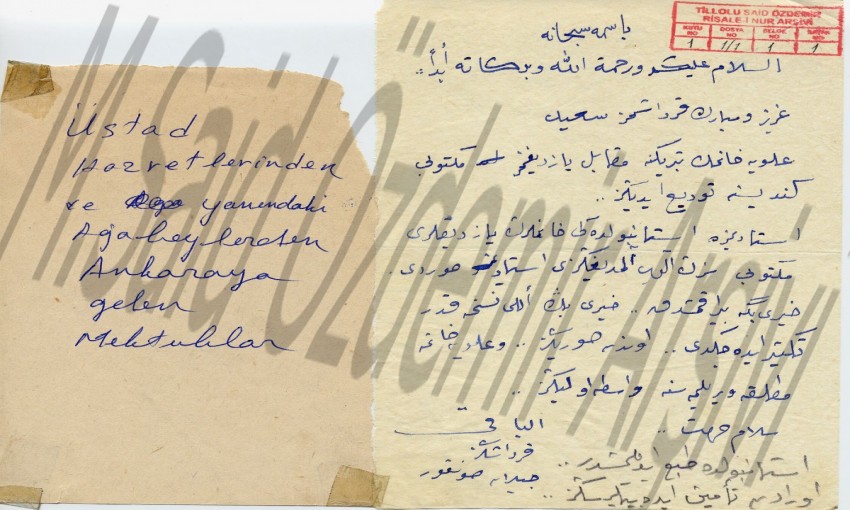 Âlime Hanımın tebriğine mukabil yazdığımız mektubu kendisine tevdi ediniz. Üstadımıza İstanbul'daki hanımların yazdıkları mektubu sizin alıp almadığınızı Üstad sordu. Hayri ile bırakmıştık. Hayri bin elli nüsha kadar teksir edecekti. Ondan sorunuz. Ve Âlime hanıma mutlaka verilmesine vasıta olunuz.