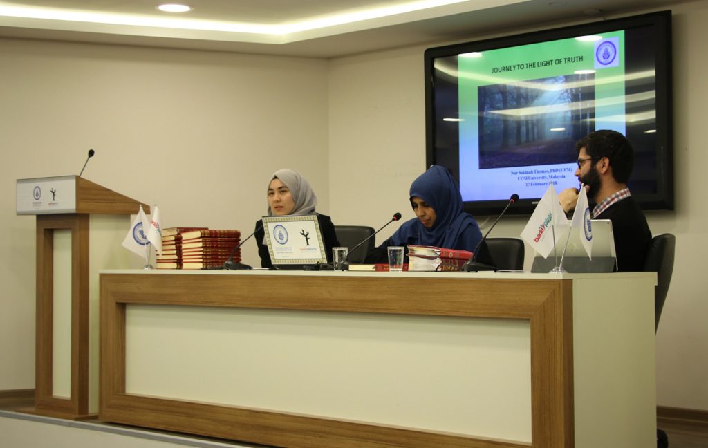 “Risale-i Nur okuyunca imanın tadını aldım.” Bu sözler, İİKV ‘nin yaşayan tefsir başlıklı semin er dizisinin bu ayki konuğu olan Malezya UCSI üniveristesi öğretim üyesi Dr. Nur Sakeenah Thomas’a ait. Dr. Sakeenah, Müslüman olma sürecini ve ardından Risale-i Nur’u tanımasıyla birlikte hayatının nasıl değiştiğini anlattı. Dr. Sakeenah 2014’de İİKV’nin Risale-i Nur eğitim haftası etkinliklerine katılmak üzere İstanbul’a geldiğinde Müslüman olalı henüz birkaç yıl olmuştu ve seçimini sorguladığı zor günler geçiriyordu. O günleri anlatırken “Hiç mutlu değildim, çok ümitsizdim. Hattâ tekrar Hıristiyan olmayı düşündüğüm bile oldu” dedi. Risale-i Nur eğitim programında Hutbe-i Şâmiye üzerinde çalışmalar yaptıklarını anlatan Dr. Sakeenah “Yolculuğuma Hutbe-i Şâmiye ile başladım. İlk okuduğumda daha önce bunun gibi bir şey okumadığımı fark ettim” dedi. Nur Sakeenah, Hutbe-i Şâmiye’de anlatılan altı devanın, kendisi için tam bir manevî reçete yerine geçtiğini söyledi.