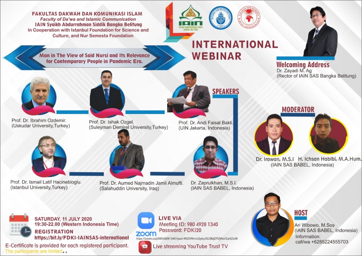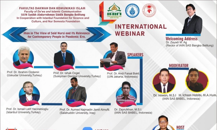 Endonezya Bangka Adası Şeyh Abdurrahman Sıddik Üniversitesi, Dawa ve İslami İletişim Fakültesi İstanbul İlim ve Kültür Vakfı ve Nur Semesta Vakfı ile birlikte Uluslararası Webinar düzenliyor. Bu webinarın konusu: