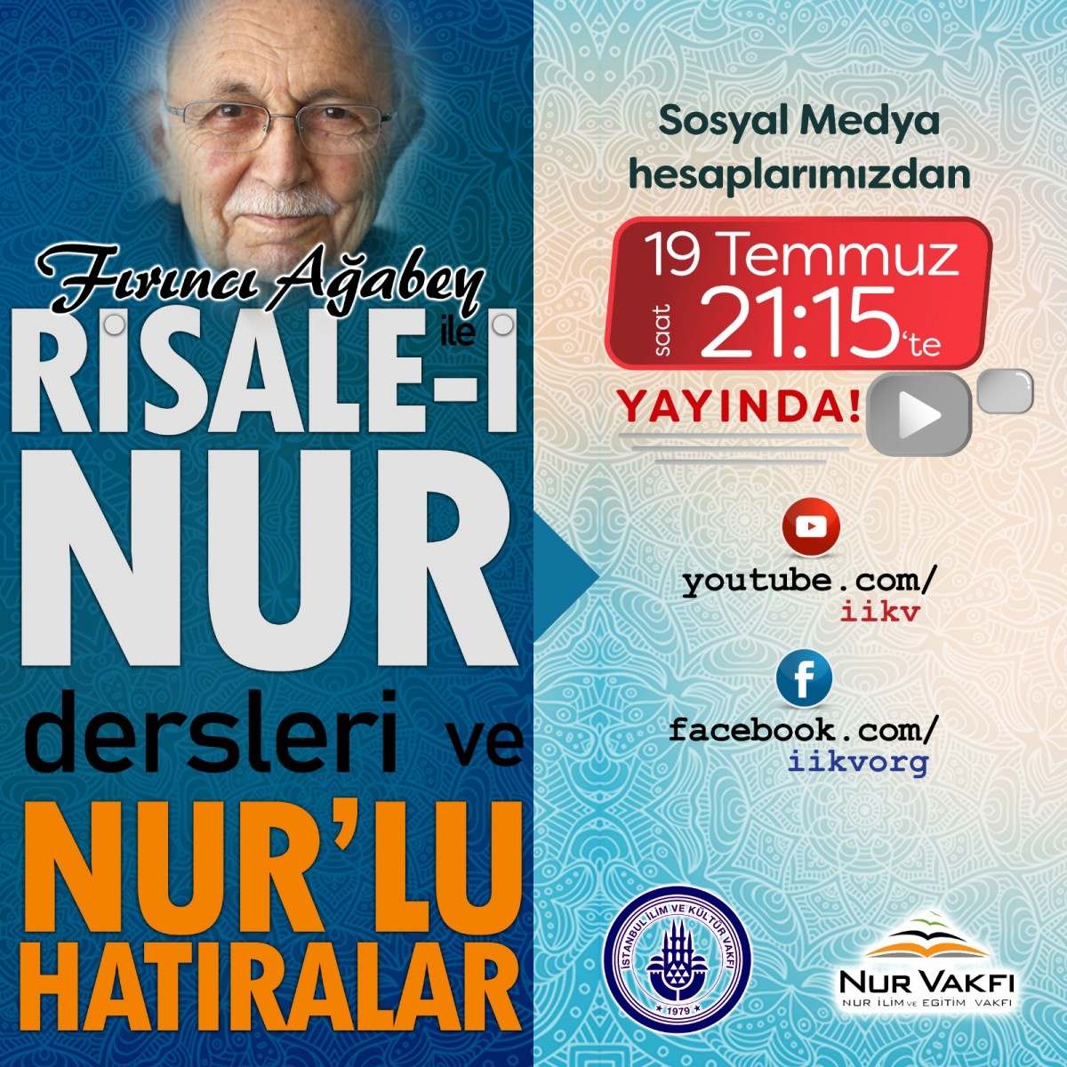 Bediüzzaman Hazretlerinin talebesi ve İstanbul İlim ve Kültür Vakfı Mütevelli Heyeti Başkanı Mehmed Fırıncı Ağabey’in geçtiğimiz Ramazan ayında internet üzerinden yapmış olduğu canlı dersler haftalık olarak devam ediyor.