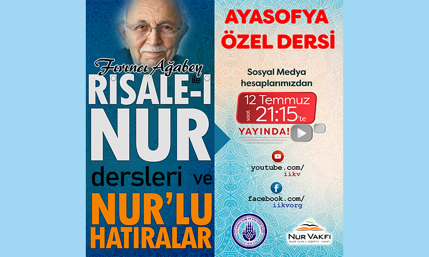 Bu Pazar (12 Temmuz Pazar) 21.15'te Fırıncı Ağabey ile Ayasofya Özel Dersi yapılacaktır.
