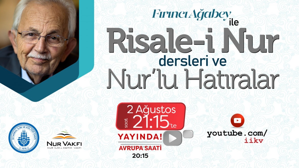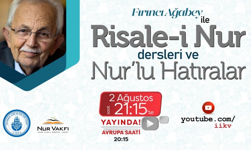 Bediüzzaman Hazretlerinin talebesi ve İstanbul İlim ve Kültür Vakfı Mütevelli Heyeti Başkanı Mehmed Fırıncı Ağabey’in geçtiğimiz Ramazan ayında internet üzerinden yapmış olduğu canlı dersler haftalık olarak devam ediyor.