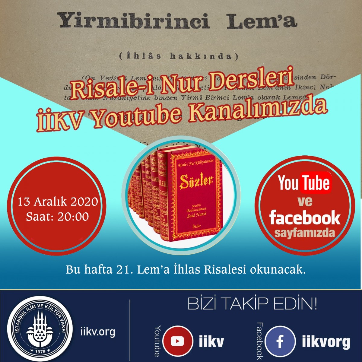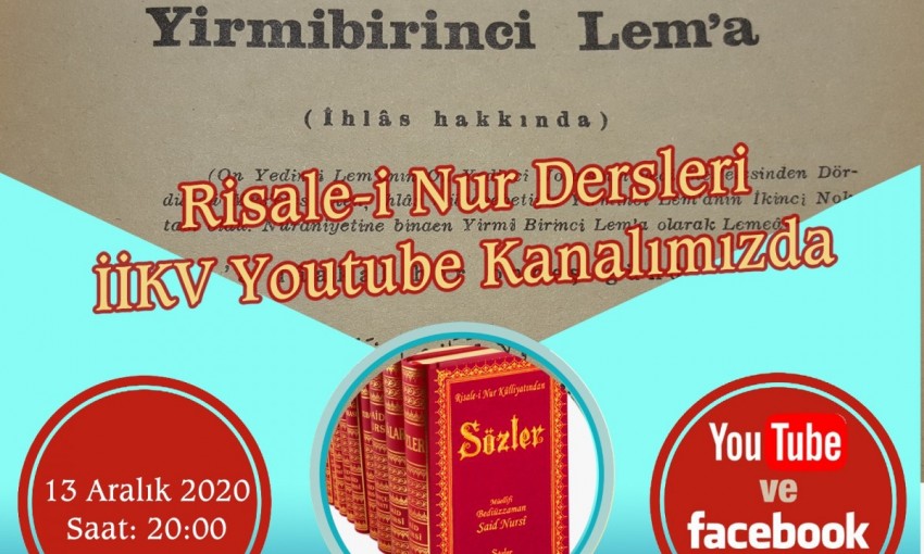 Canlı yayında "21. Lem'a / İhlas Risalesi" okunacak.