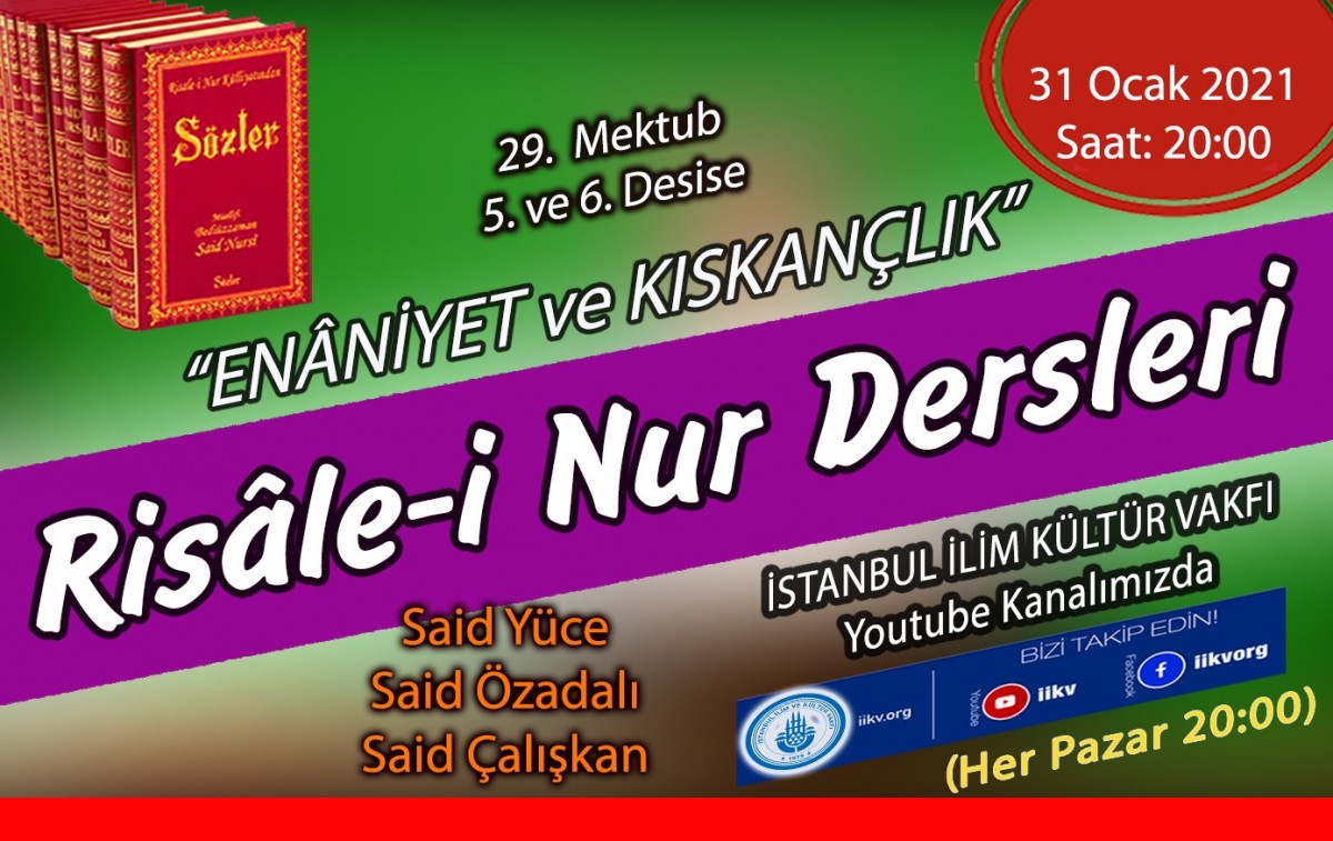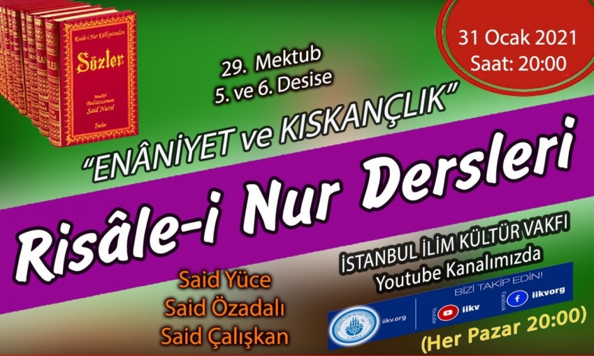 Her pazar devam eden Risâle-i Nur dersimiz 31 Ocak 2021 (bu akşam) Pazar 20.00'de yapılacaktır.
