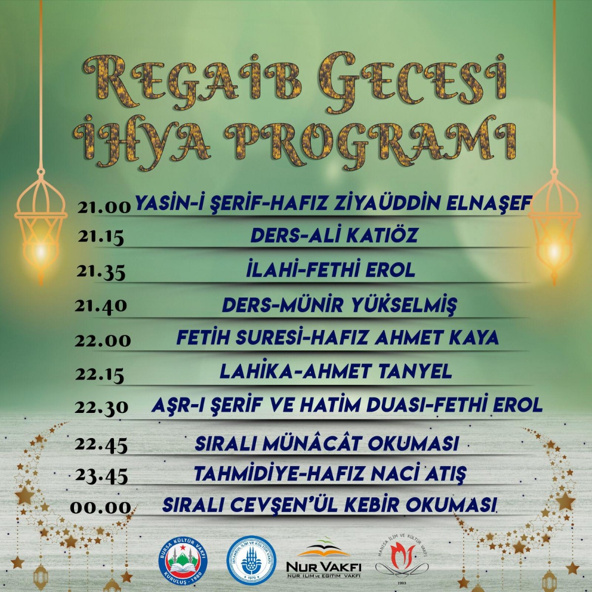 Birbirinden değerli Ağabeylerimizin ve Hocalarımızın katılımlarıyla bugün (18 Şubat Perşembe)21.00-01.00 saatleri arasında düzenleyeceğimiz Regaip Gecesi İhya Programı'na sizlerin de katılımınızı bekler, şimdiden LEYLE-İ REGAİB'İNİZİ tebrik ederiz.