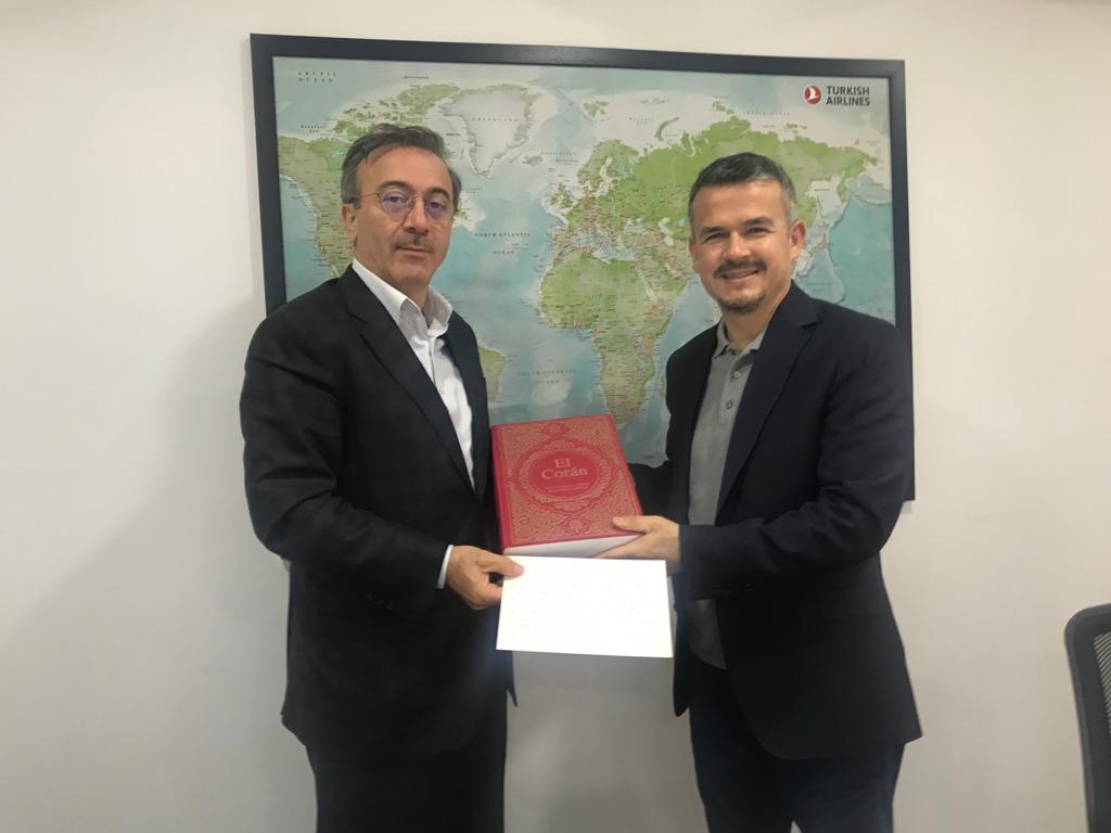 İstanbul’a yaptığımız seyahatte bize olan misafirperverliğinize teşekkür makamında “Bahige Mulla Huech” (Allah’ın rahmeti üzerine olsun) tarafından İspanyolca’ya tercüme edilmiş ve tefsir edilmiş bu Kur’an’ı sizlere hediye ediyoruz. Blanes ve Madrid’e sizi her zaman bekleriz.”