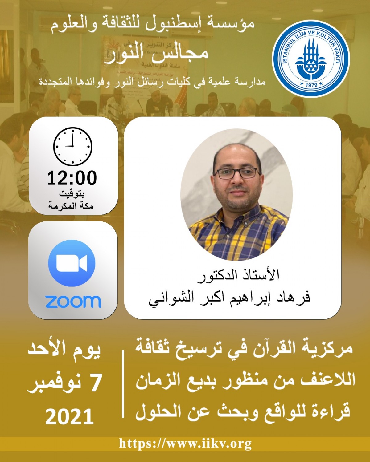 İİKV, akademik çalışma faaliyetlerine bir yenisini daha ekledi. "Bediüzzaman Said Nursi perspektifinden şiddetsiz yaşam kültürünün sağlanmasında Kuran'ın merkeziyeti" konulu "ilmi meclis" çevrimiçi olarak gerçekleştirildi. İki ayda bir düzenlenecek olan "ilmi meclis"te Risale-i Nur'da ele alınan konular, akademik camiada tebliğ ve araştırmalarla birlikte sunulmaktadır.