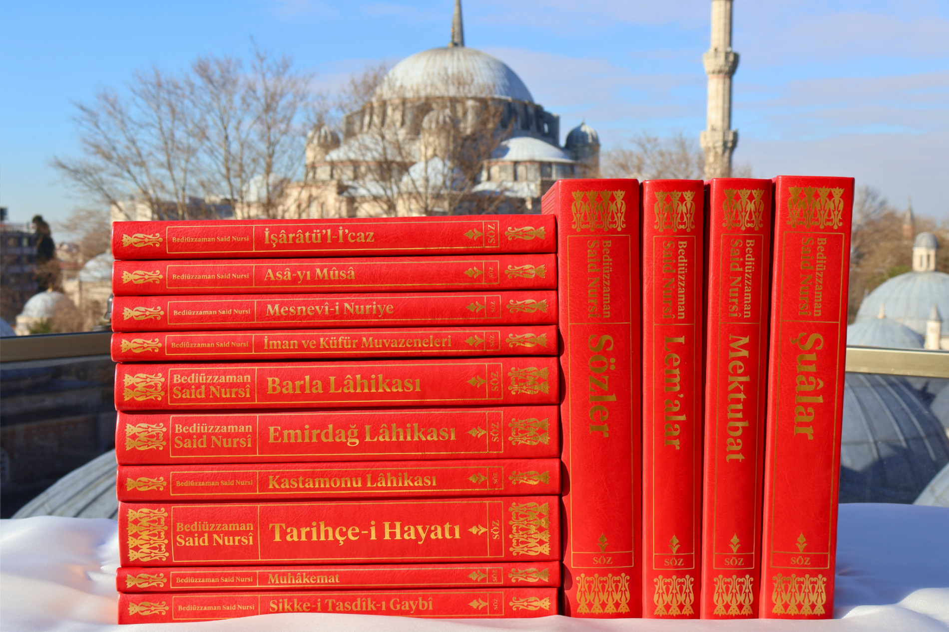 Bediüzzaman Said Nursî Hazretleri'nin telif ettiği, 14 kitaptan oluşan Risale-i Nur Külliyatı; ithal termo deri, yaldızlı, özel tasarım kapağı ve anlamayı kolaylaştıran lügatli, kaynaklı, indeksli içeriğiyle yeniden basıldı.