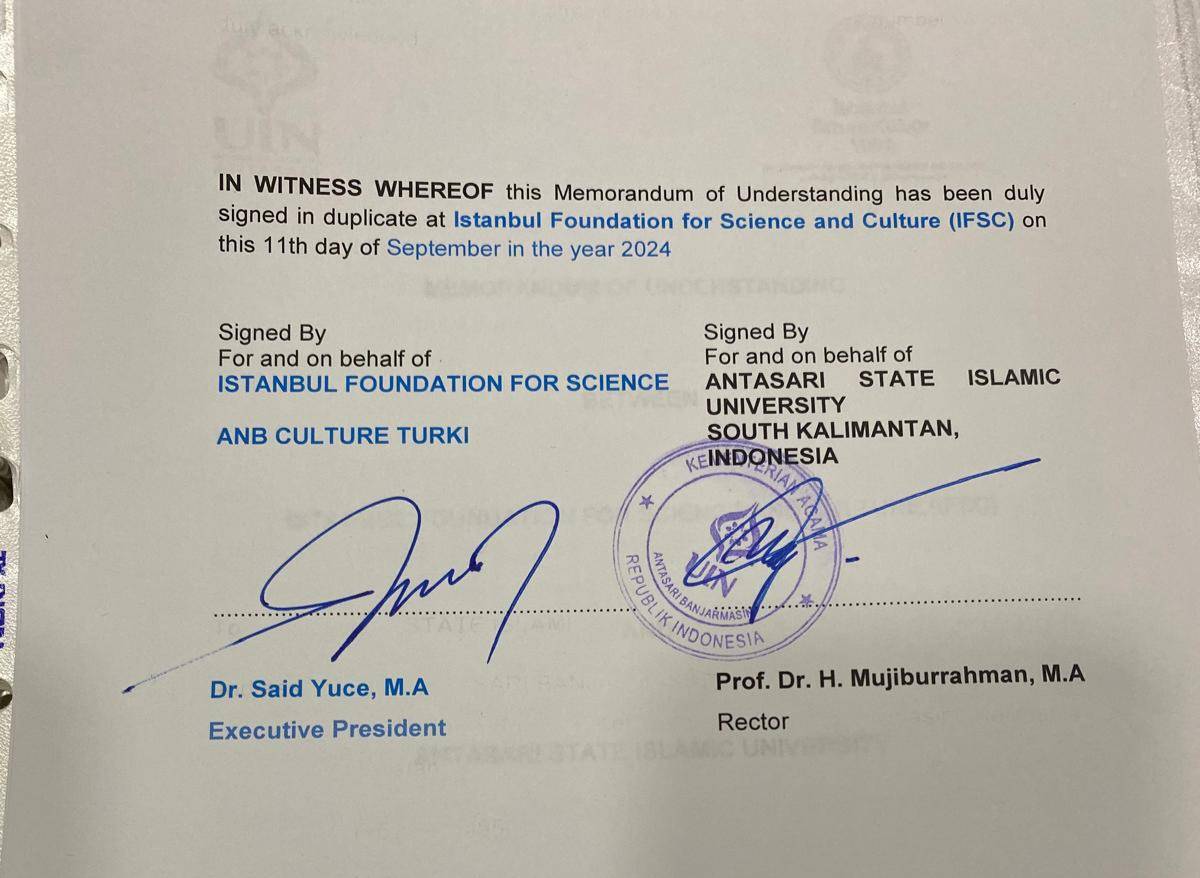 İstanbul İlim ve Kültür Vakfı Mütevelli Heyeti Başkanı Said Yüce ve Antasari Devlet İslam Üniversitesi Rektörü Prof. Dr. H. Mujiburrahman, İİKV'de bir araya gelerek iki ülke arasında eğitim adına önemli iş birliği anlaşması sağladı.