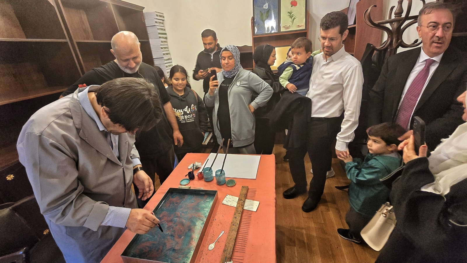 Ebrudar İzzettin Yılmaz Başkar hocamız ile katılımcılar pogramdan önce atölyede Ebru Sanatını deneyimledi.