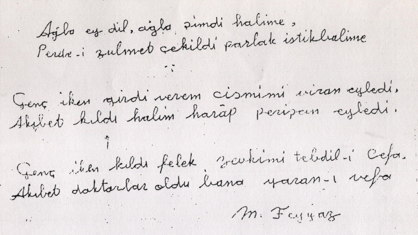 Akıbet doktorlar oldu bana yazan-ı vefa"