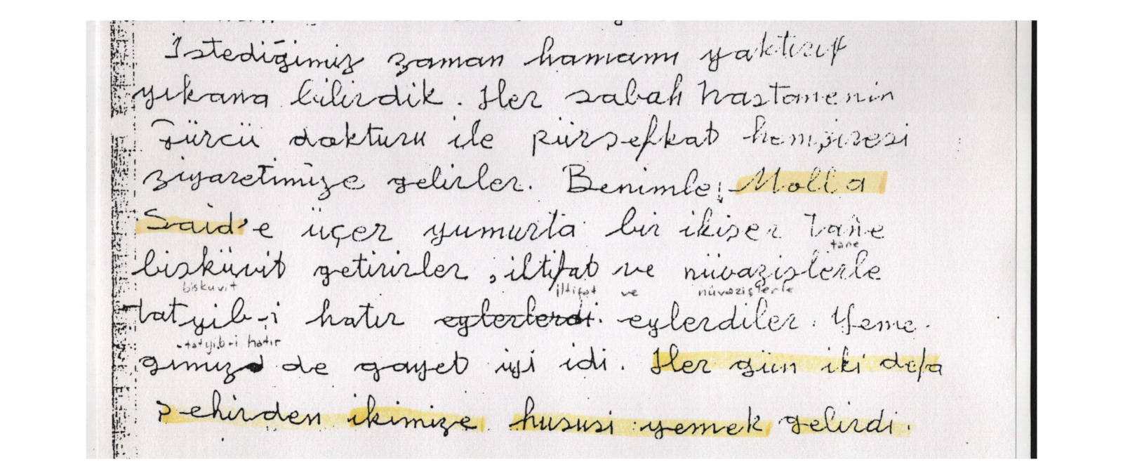 " İstediğimiz zaman hamam yaktırıp yıkana bilirdik. Her sabah hastanenin Gürcü doktoru ile pürşefkat hemşiresi ziyaretimize gelirler. Benimle, Molla Said'e üçer yumurta bir ikişer tane bisküvit getirirler, iltifat ve nüvazişlerle tatyib-i hatır eylerdiler. Yemeğimiz de gayet iyi idi. Her gün iki defa şehirden ikimizde hususi yemek gelirdi..png)